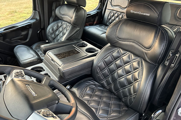 • Spacious Luxury Crew Cab featuring our Power Lay Down Rear Sofa.
