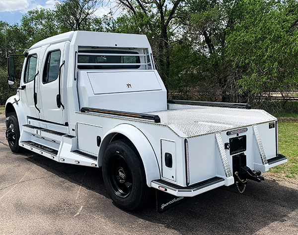 Our trucks are all custom specked for towing and highway taming. We offer a powerhouse bigblock capable of producing 1850 ftlb of pure torque!
